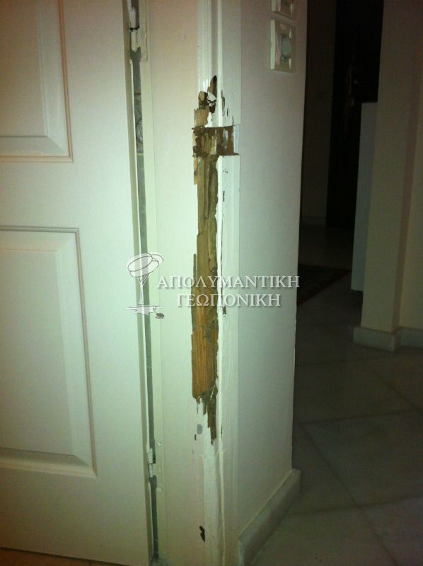 Ριζική καταπολέμηση υπόγειων τερμιτών σε ισόγεια κατοικία στο Χολαργό Αττικής με τη μέθοδο της τροφάλλαξης (Trap-Treat-Release). Η απεντόμωση τερμιτών είναι μία διαδικασία που απαιτεί συγκεκριμένη τεχνογνωσία και πραγματοποιείται με επιτυχία από ειδικά συνεργεία απεντόμωσης. Η καταπολέμηση τερμιτών για να είναι οριστική θα πρέπει η εφαρμογή να γίνει αναλυτικά σε όλα τα δυνητικά σημεία προσβολής και μάλιστα με τη μέθοδο της τροφάλλαξης, που εμφανίζει μοναδικά αποτελέσματα (ριζική εξολόθρευση τερμιτών). Οι πρώτες ενδείξεις παρουσιάστηκαν πριν από κάποια χρόνια σε κουφώματα και σε κάποια σημεία του ξύλινου πατώματος (τερμίτες στο πάτωμα). Έπειτα από παρέμβαση ξυλουργού οι ζημιές των τερμιτών καλύφτηκαν με στόκο αφού πρώτα έγινε τοπικά ψεκασμός με κάποιο «ειδικό φάρμακο για τερμίτες», χωρίς το πρόβλημα να αντιμετωπιστεί.