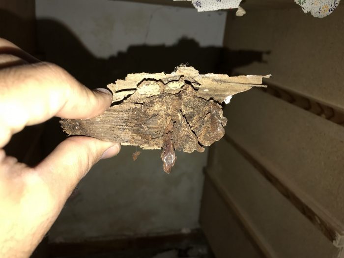 Στην διώροφη κατοικία στον Πύργο μετά από την πρώτη αυτοψία που πραγματοποιήσαμε διαπιστώθηκε προσβολή υπόγειων τερμιτών που ξεκίνησε πιθανώς πριν από αρκετά χρόνια στο υπόγειο και σταδιακά μεταφέρθηκε στα ξύλινα πατώματα, στην εσωτερική ξύλινη σκάλα και σε ντουλάπι υπνοδωματίου. Τρέφονται με όλα τα κυτταρινούχα υλικά, ότι δηλαδή περιέχει ξύλο ή χαρτί ή είναι παράγωγο αυτών!