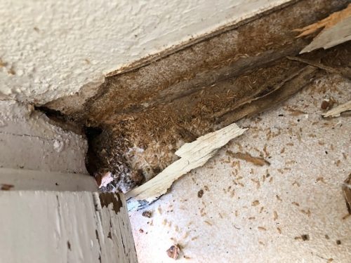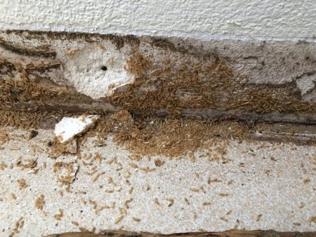 Οι τερμίτες εκδήλωσαν για πρώτη φορά την παρουσία τους πριν από αρκετά χρόνια (περισσότερα από 10!) όταν οι ξυλουργοί άλλαζαν τις εσωτερικές κάσες του σπιτιού κάθε 1-2 χρόνια. Στο μεταξύ, όποια ζημιά αποδίδονταν στην υγρασία ή άλλα ξυλοφάγα έντομα. Η ζημιά ξεκίνησε από το χαμηλότερο επίπεδο του σπιτιού στο υπόγειο-κατώι στο οποίο εισχώρησαν τα πρώτα έντομα από ατέλειες και ρωγμές των τοιχίων. Ξεκίνησαν τη διαδρομή τους προς το κυρίως σπίτι, διαπερνώντας ιδιαίτερα εύκολα το ξύλινο ταβάνι του κάτω επιπέδου που είναι και το πάτωμα του πάνω επιπέδου.Επίσης, διαπιστώθηκε μεγάλη προσβολή τερμιτών σε καινούρια ντουλάπια κουζίνας (πετώντας τα προηγούμενα που ήταν προσβεβλημένα δεν έγινε η καταπολέμηση των τερμιτών ενώ “ήρθε νέα τροφή”). Βρέθηκε μεγάλος πληθυσμός φωτοφοβικών εργατών τερμίτη σε ξύλινα σοβατεπί του πατώματος και διαπιστώθηκαν και άλλες ζημιές μικρής και μεγαλύτερης έκτασης.
